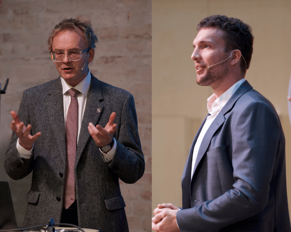 Magnus Jones (t.v.) svarer på alle mulige spørsmål om MiCA fra Morten Myrstad.