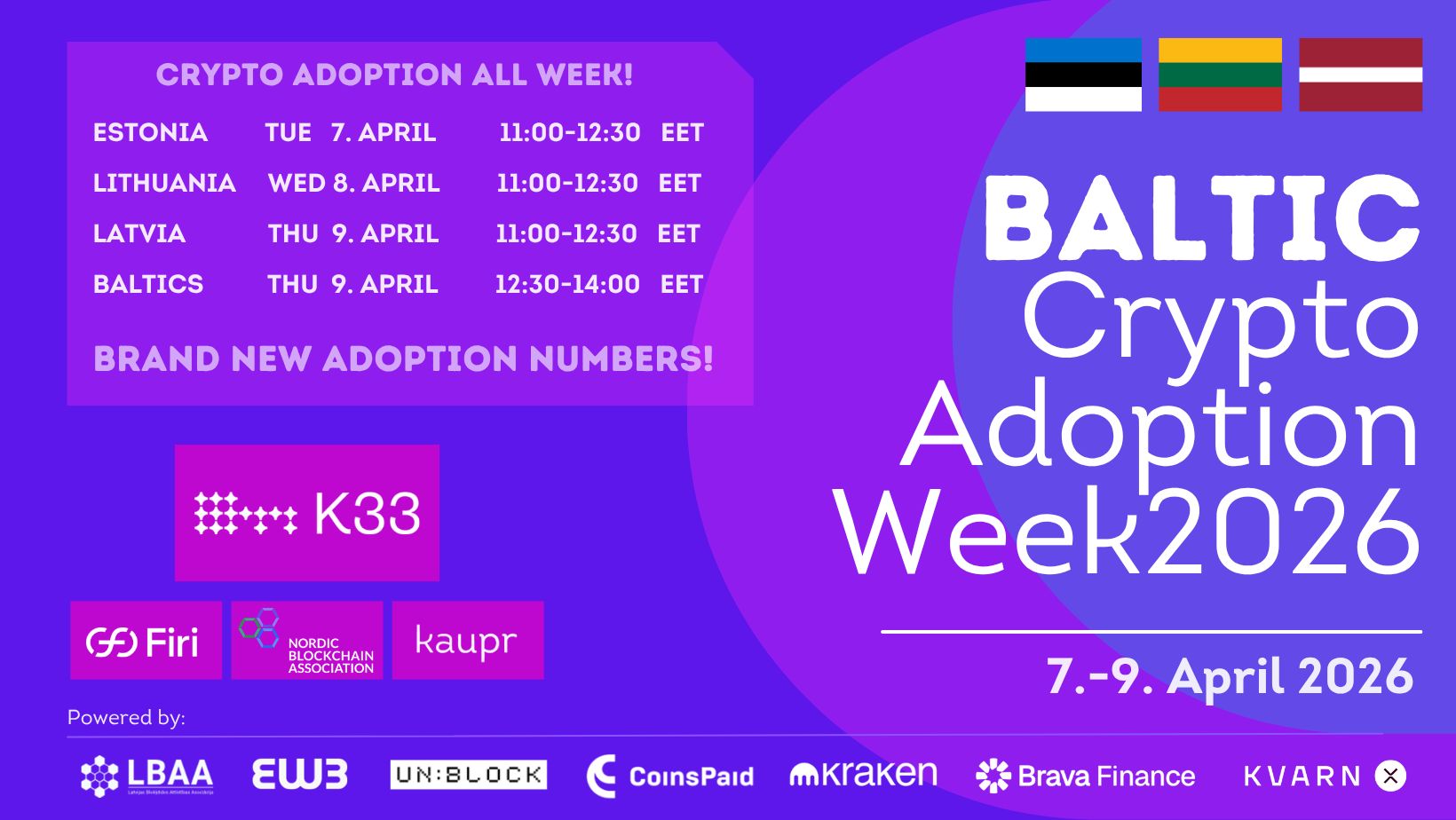 Via this landing page you can find more information about the Baltic Crypto Adoption Week, including where to follow four live events, via Linkedin, YouTube or Kaupr.